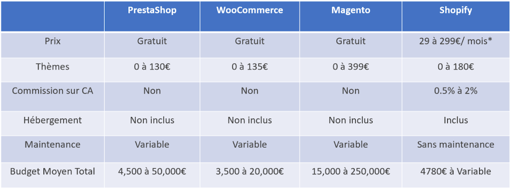 Les frais globaux de ces outils se situent dans une fourchette de 3500€ à 250000€ par an. Pour aller plus loin, voici un tableau récapitulatif trouvé sur cet article du site Cleed.ai :